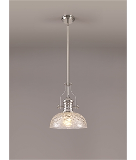 Latifi Pendant With 38cm Patterned Round Shade, 1 x E27, Polished Nickel-Clear Glass