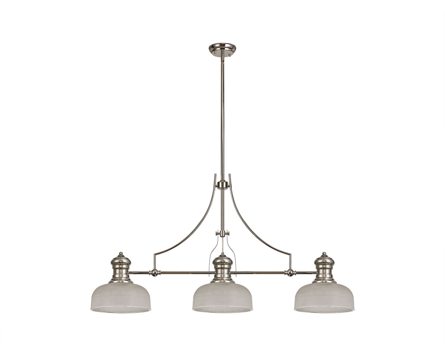 Latifi Linear Pendant With 38cm Patterned Round Shade, 3 x E27, Polished Nickel-Clear Glass Item Weight: 19.1kg