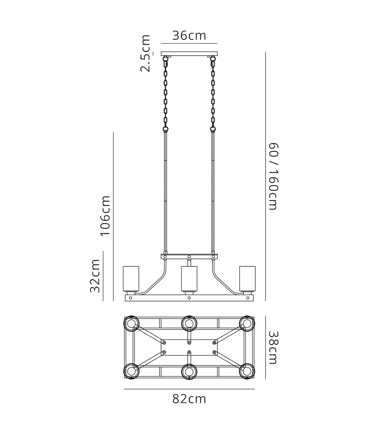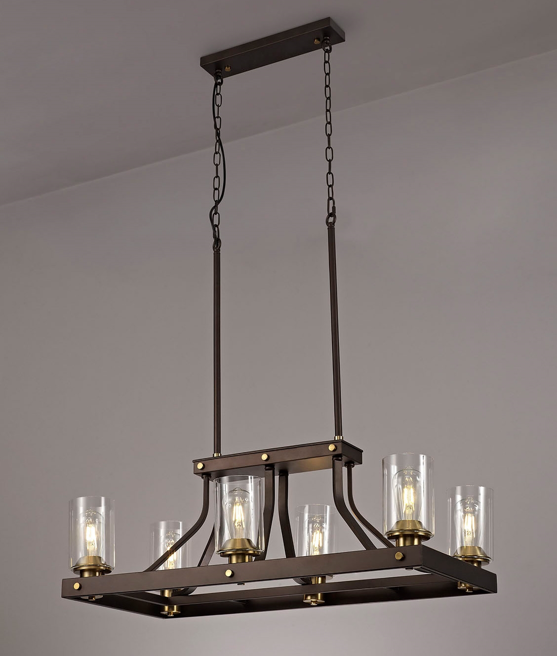 £534.00 inc VATThe Medieval notion of illuminating a room by sitting candles along a hanging frame has been re-imagined with modern day materials and lighting to design the Luca collection which will enhance a traditionally styled setting. The dark Brown Oxide and Gold Bronze finish gives the fixtures an antique feel whilst the glass cylinders surrounding the E27 lamp holders furthers the historic ambience, particularly when used in conjunction with(LED or CFL candle lamps.