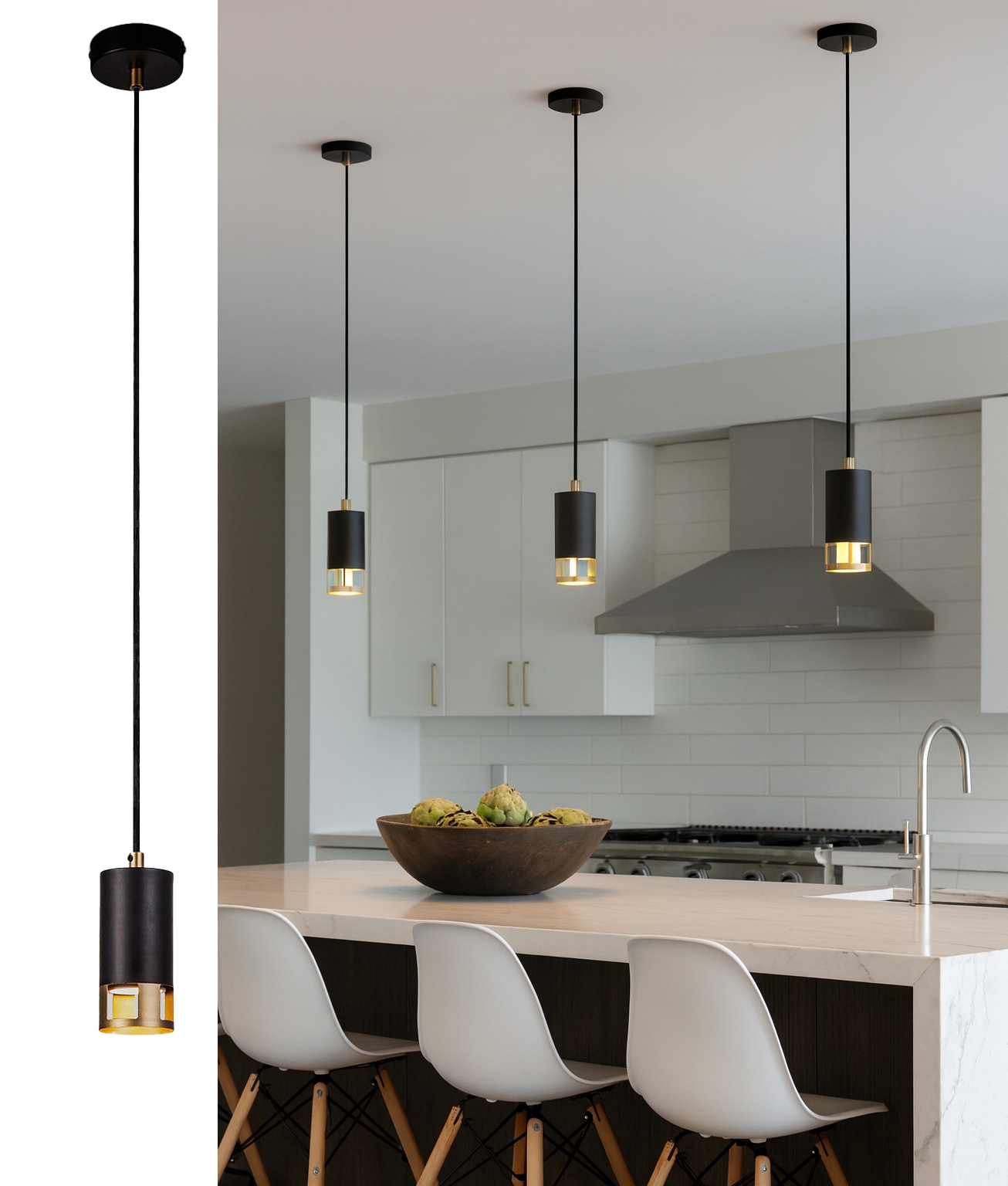Single Pendant with Adjustable Drop and Chic Black & Gold Design
