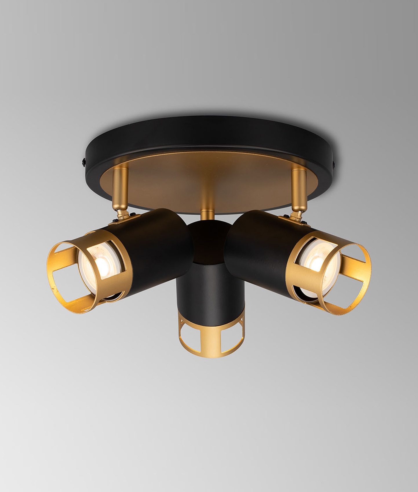 3 Light Round Spotlight GU10, Black - Painted Gold
