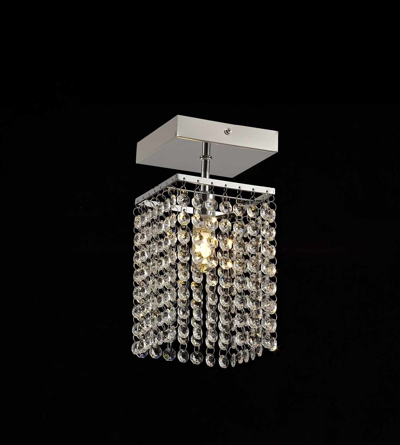 Unlike traditional random drops, the crystals are arranged into a defined square formation, forming a cube around the G9 lamp holders. When illuminated, the light refracts through the crystals, producing captivating spectral effects. The protective casing around the G9 lamp holders ensures an IP44 rating, making this an elegant crystal lighting choice suitable for bathrooms.