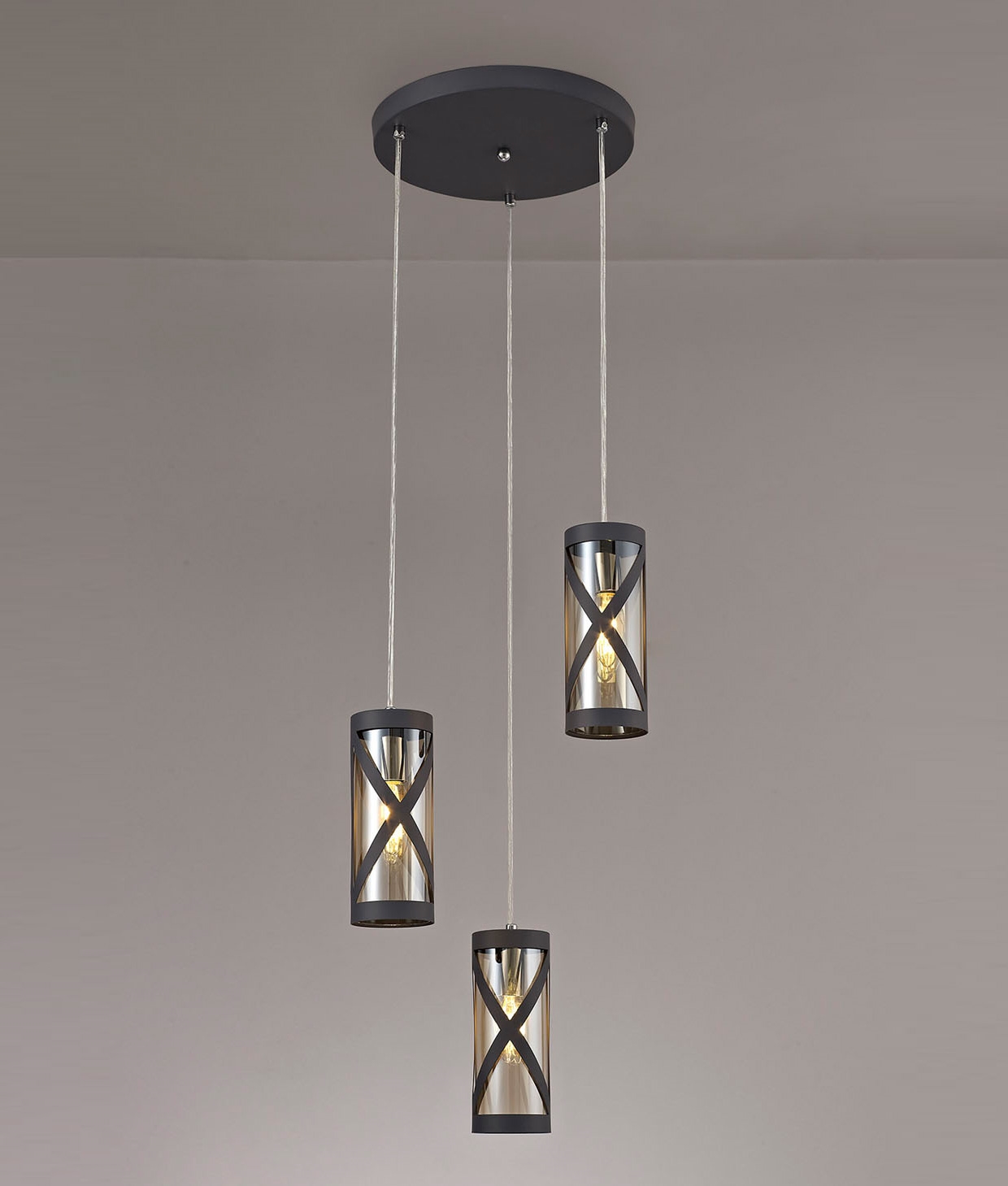 Matt Grey & Polished Chrome with Cognac Glass Shades