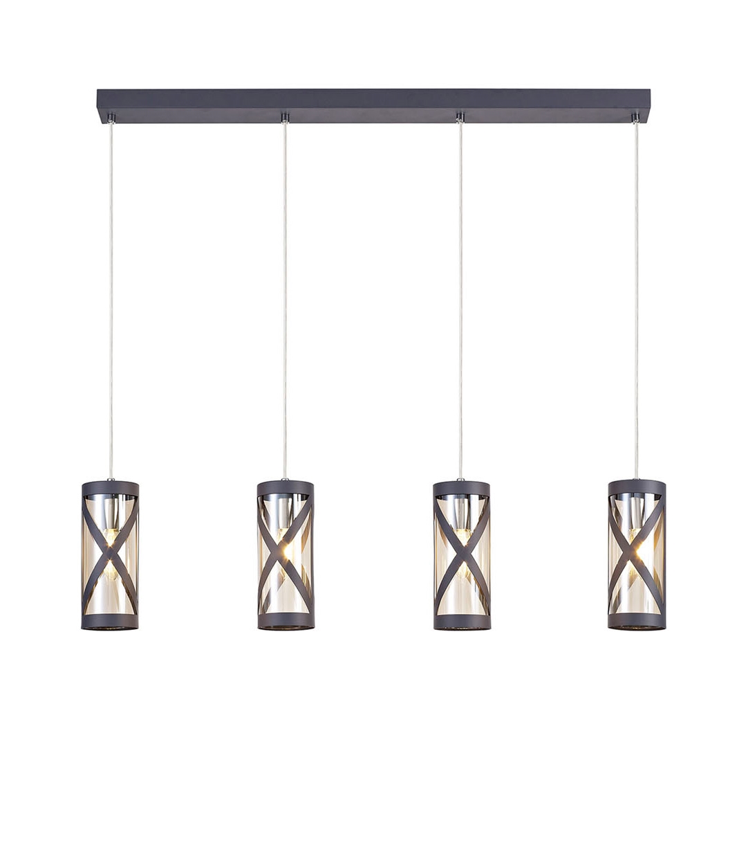 4 Light Linear Flush Pendant Matt Grey & Cognac Shades