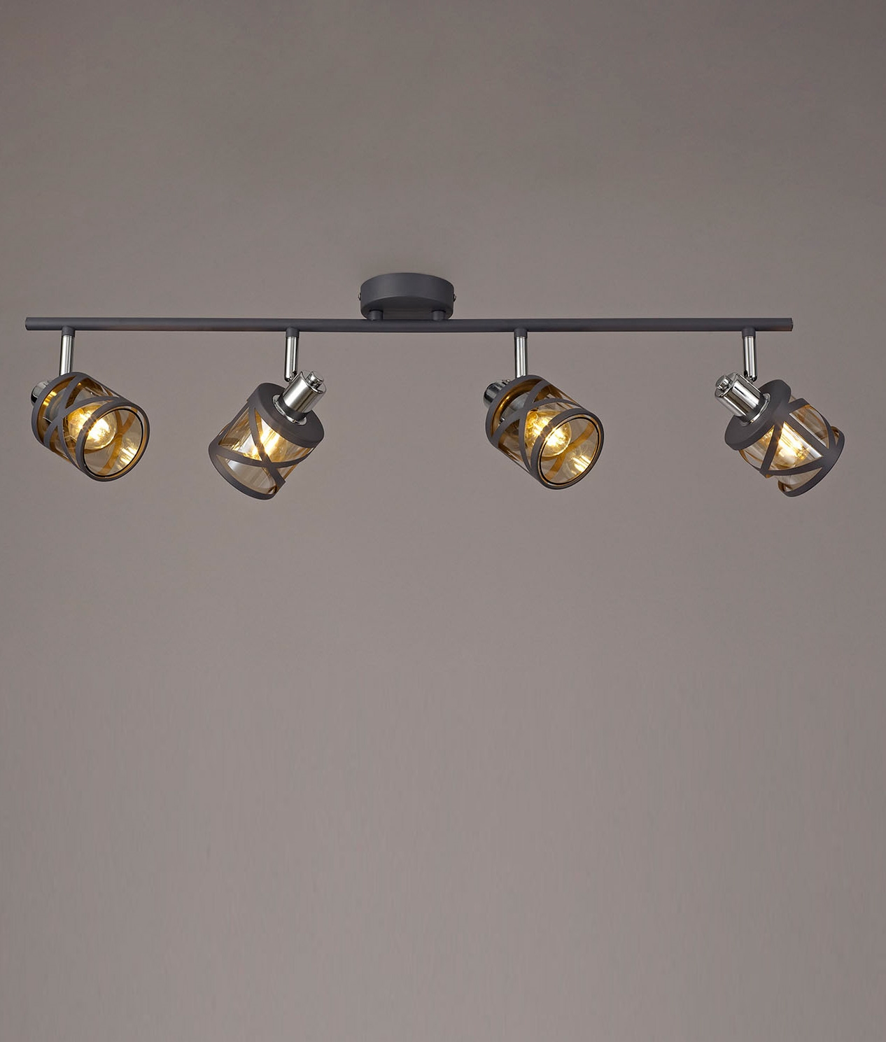 Linear Adjustable 4 Light Spotlight - Matt Grey Finish & Cognac Shades