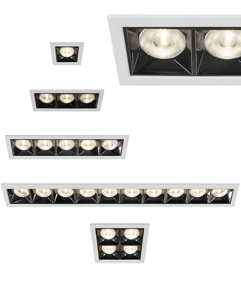 Each design features multiple light heads, ranging from single to multi-light setups, allowing for tailored illumination in any space. The modular nature of these downlights ensures versatility, with options including one, two, three, four, five, and even more heads. These units are ideal for creating concentrated lighting in key areas, whether used in residential or commercial spaces.