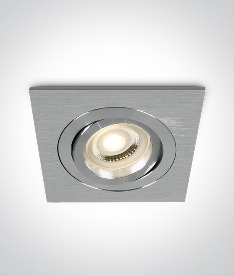Square Brushed Aluminium Single Recessed Adjustable Downlight For Mains GU10 Bulbs