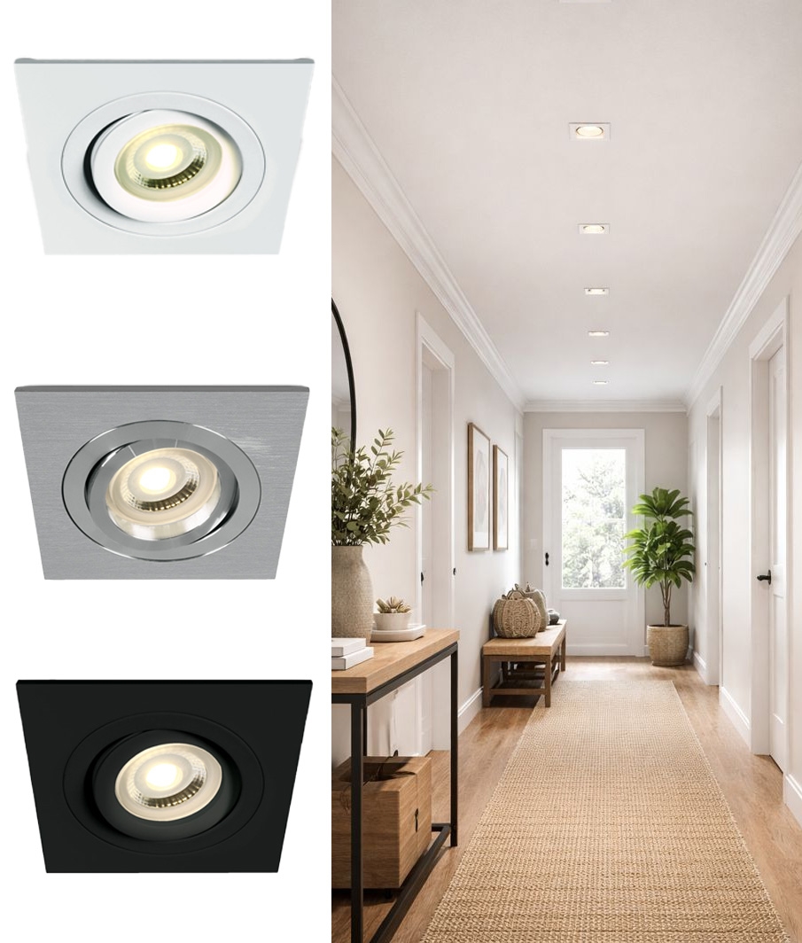 Square Recessed Adjustable Mains Spotlight - 3 Finishes