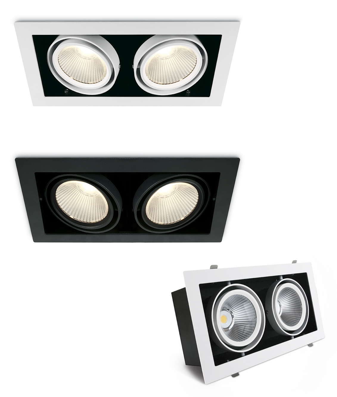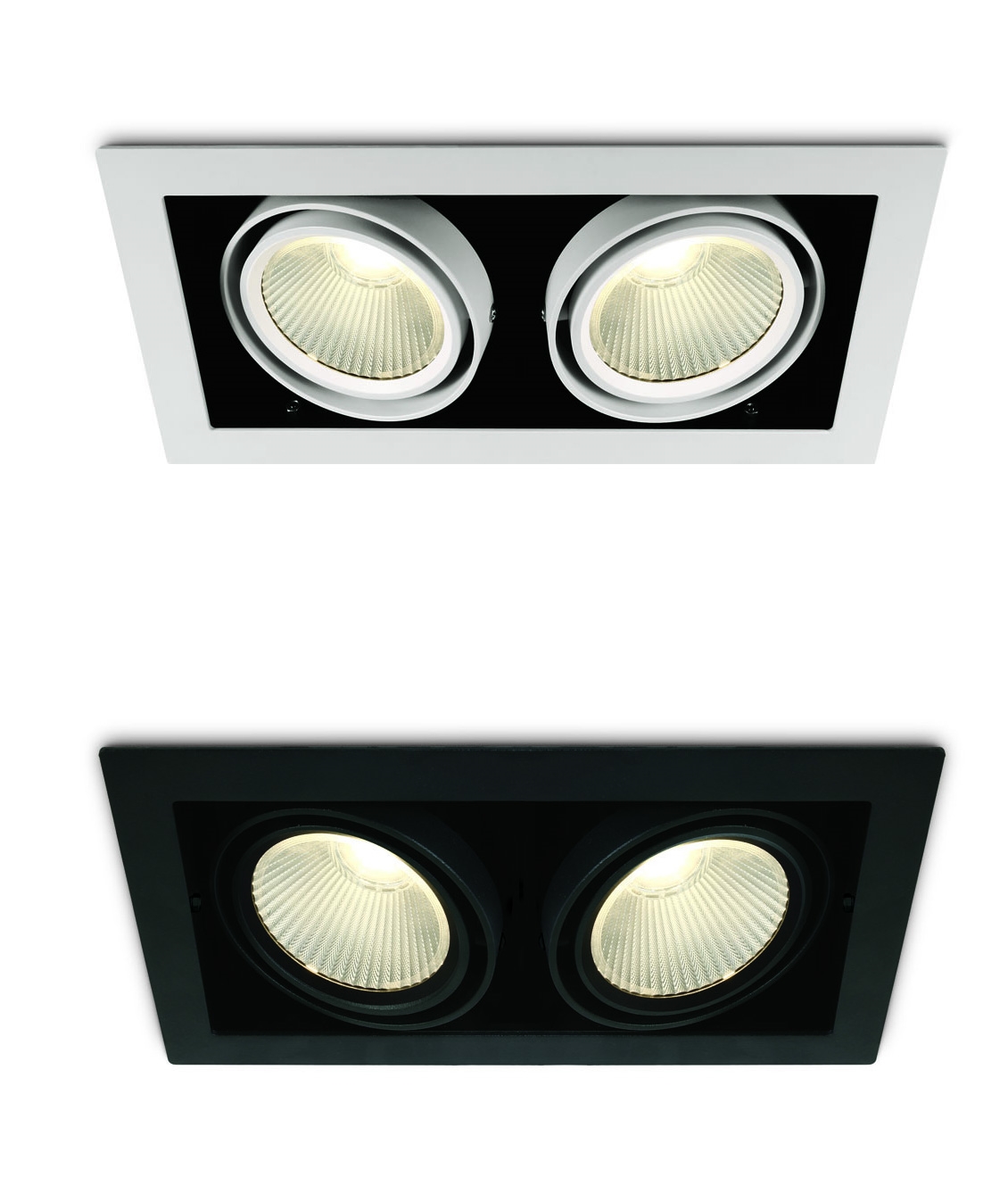 £149.00 inc VATA precision-engineered recessed downlight featuring two independently adjustable lamp heads, ideal for directional illumination in contemporary interiors. Each head houses a high-performance 30W COB LED, delivering a focused 38° beam that provides strong, controlled lighting across walls, surfaces, or display areas.