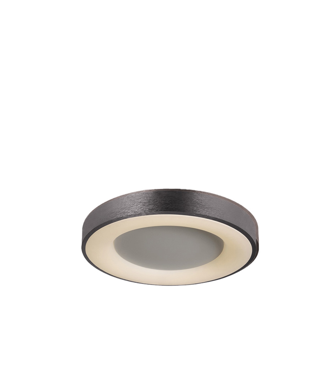 This flush-mounted light presents a refined circular form that projects just 87 mm from the surface, offering a tidy appearance suited to both ceilings and walls. The brushed perimeter trim is available in brown, anthracite, or gold to coordinate with a variety of interior finishes. Edge-lighting produces an illuminated ring around the white central disc, creating gentle, uniform light without glare. Two diameters available, 48cm and 60cm, ensuring a suitable scale for different rooms and ceiling heights.