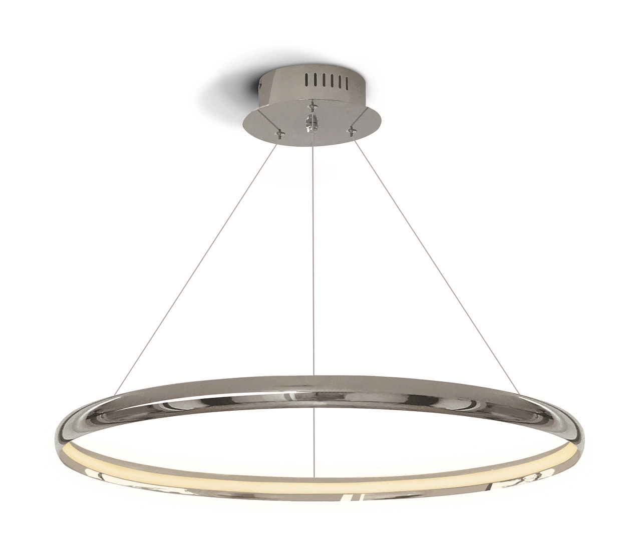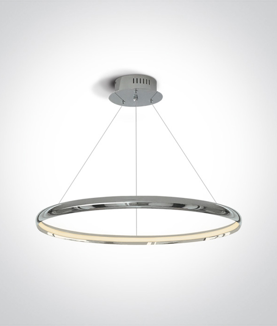 £187.00 inc VATThis sleek and modern 19-watt LED pendant features a striking circular design with a 60cm diameter, making it a perfect statement piece for contemporary interiors. Suspended by tensile wires, the pendant appears to float elegantly from the ceiling, creating a clean and minimalist aesthetic.