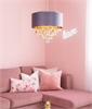 £115.00 inc VATThis pendant light features an elegant and modern design, combining a sophisticated fabric shade with an interior chandelier adorned with crystal baubles. The exterior shade is a sleek grey, providing a contemporary contrast to the warm, golden interior, which enhances the light's radiance and adds a touch of luxury.