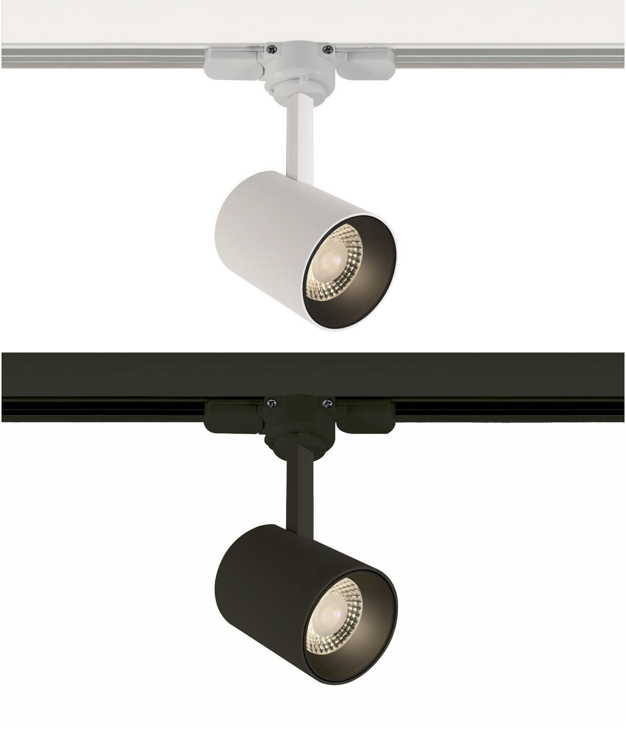 This compact cylindrical LED track spotlight provides a clean, contemporary appearance suited to both residential and commercial interiors. The integrated COB LED sits within a precision reflector that delivers a well-defined beam and excellent visual comfort. Its understated form allows the light to take focus, rather than the fitting itself.