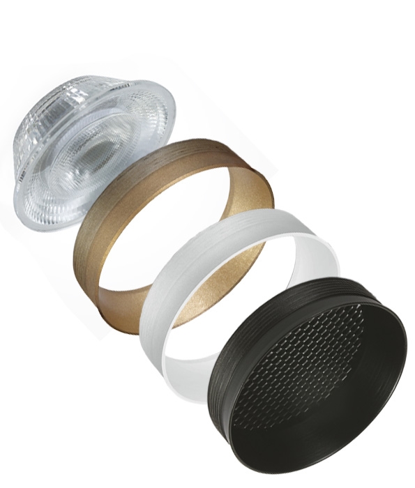 Powered by a Bridgelux COB LED with a colour rendering index above 90, this fitting delivers natural colour accuracy and long-term reliability. The 38° beam is supplied as standard, with drop-in lenses available for 25° and 15° distributions. Accessories include honeycomb filter for additional glare control, plus gold and white bezel options to alter reflector tone and aesthetic. Operating at 3000K warm white, the fitting combines performance, adaptability and visual precision for demanding specification work.