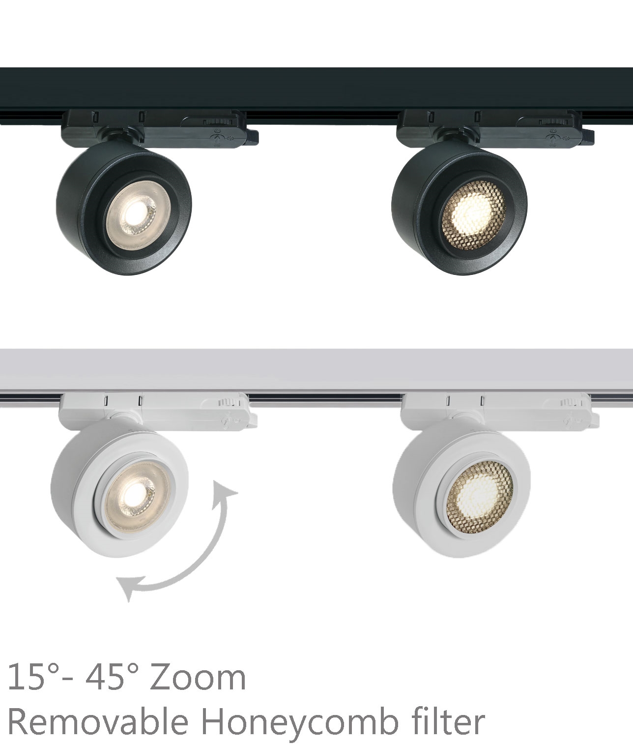 15w Zoom Adjustable Track Spotlight - Widely Compatitible COB LED & Removable Honeycomb