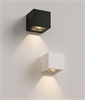 Made from die-cast aluminium with a durable powder-coated finish, the fitting is available in white or anthracite. Its minimalist cube design offers a contemporary appearance suited to both modern and traditional settings, indoors or out.