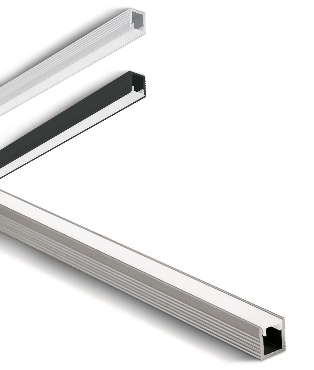 Supplied complete with an opal polycarbonate diffuser, stainless steel fixing clips, and two end caps finished to match the chosen profile colour. Available in anodised aluminium, white, or black, this compact profile is ideal for subtle linear lighting where space is limited.