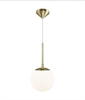 15cm Opal Glass Bauhaus Style Ball Light Pendant with Brass Fittings