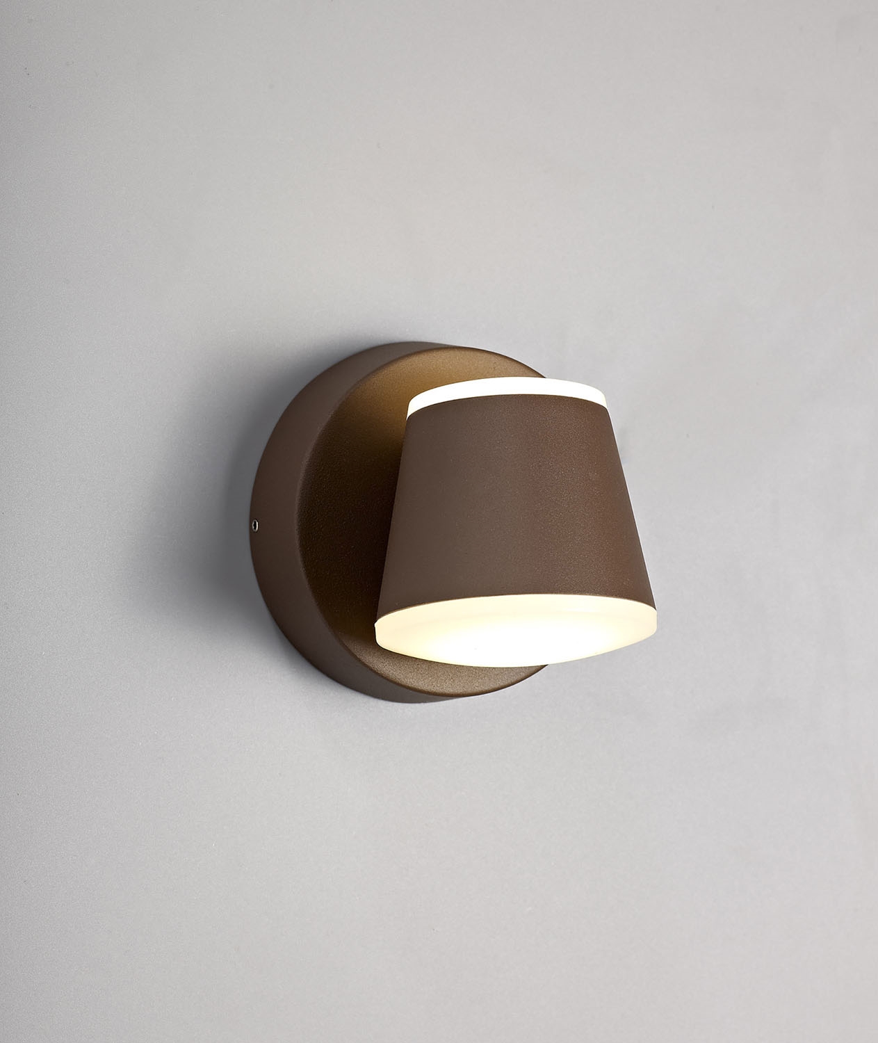 £65.00 inc VATThe Oscar 12W wall lamp is IP54 rated with an intriguing structure. The integral LED head is shaped to mimic a classic lampshade with the light filtered through both the bottom and top of the shade throwing light in two directions. A dark brown colour finish reflects natural woodland elements allowing the wall lamp to more seamlessly settle into a garden setting.