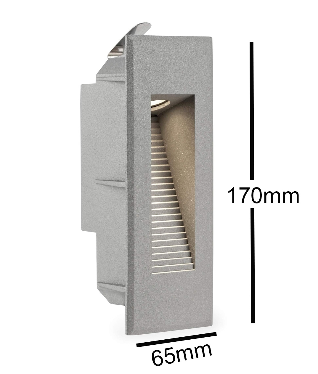 £49.50 inc VATExterior recessed wall light to add additional lighting to your garden. Perfect on boundary walls or along driveways. In a grey finish, constructed of aluminium and with a clear glass diffuser this is a stylish low level light which gives a pleasing light effect.