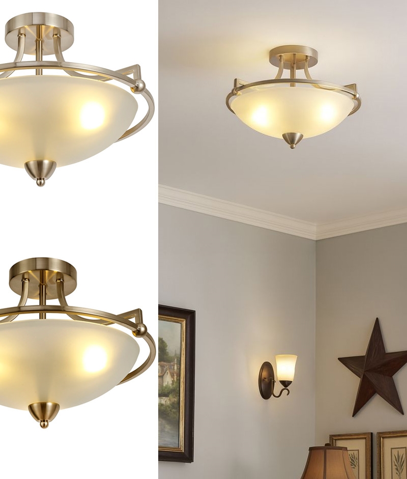 Semi-Flush Ceiling Light with Frosted Glass & Nickel or Brass Finish