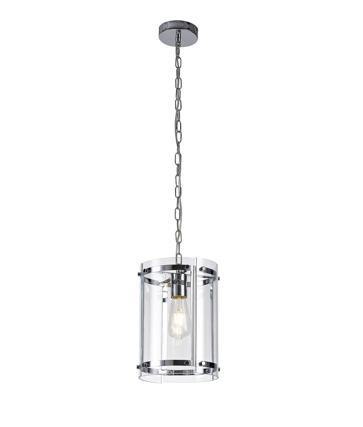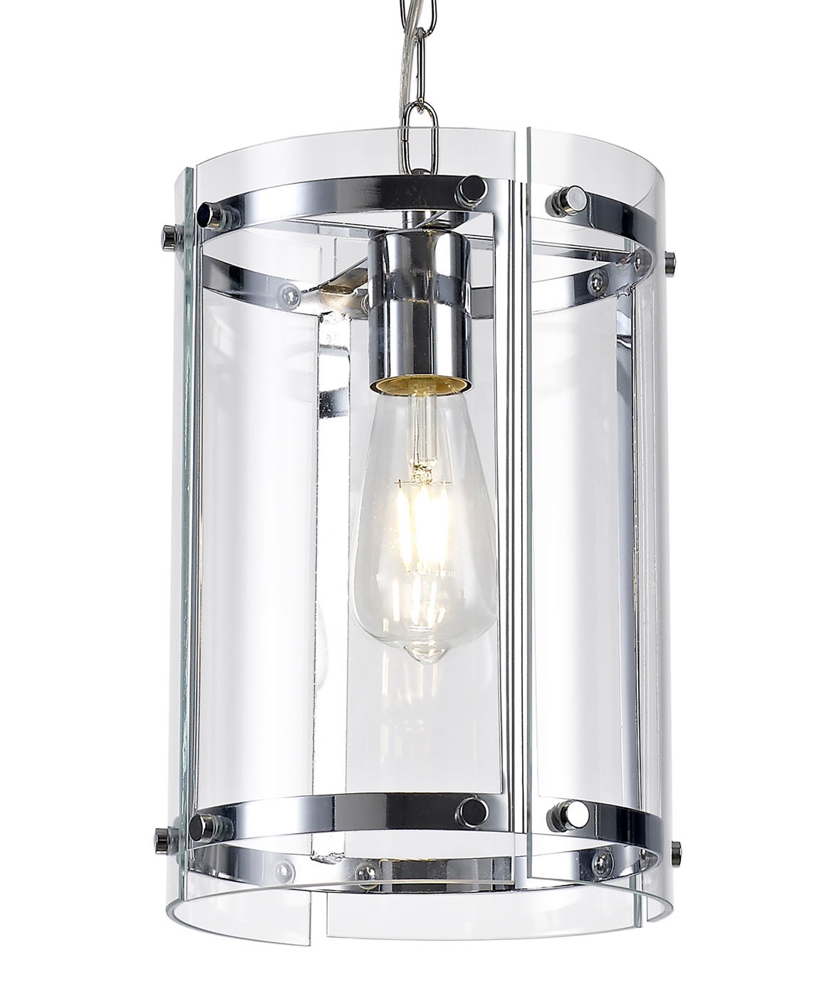 Clear Circular Glass Hallway Pendant - Chain Link Suspension