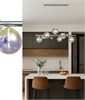 The pendant combines clean lines with playful, sculptural elements, creating a contemporary aesthetic. Adjustable suspension wires allow customisation to fit your ceiling height, ensuring a perfect fit for your space. With its blend of modern elegance and functional illumination, this pendant is ideal for creating a statement above dining tables or kitchen islands.
