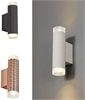 An interesting fitting that provides more of a design edge than the regular up and down wall lights. Available in three finishes.
