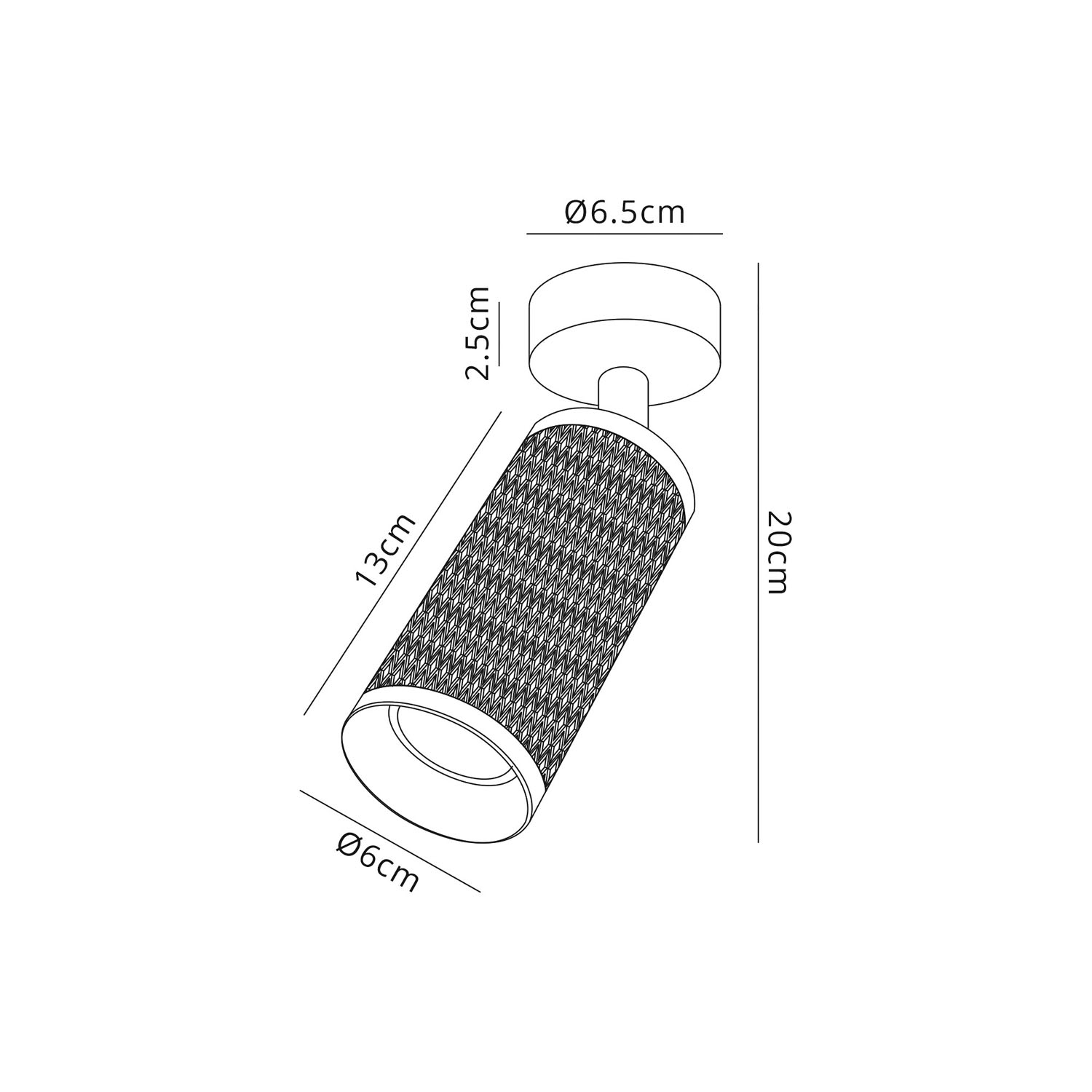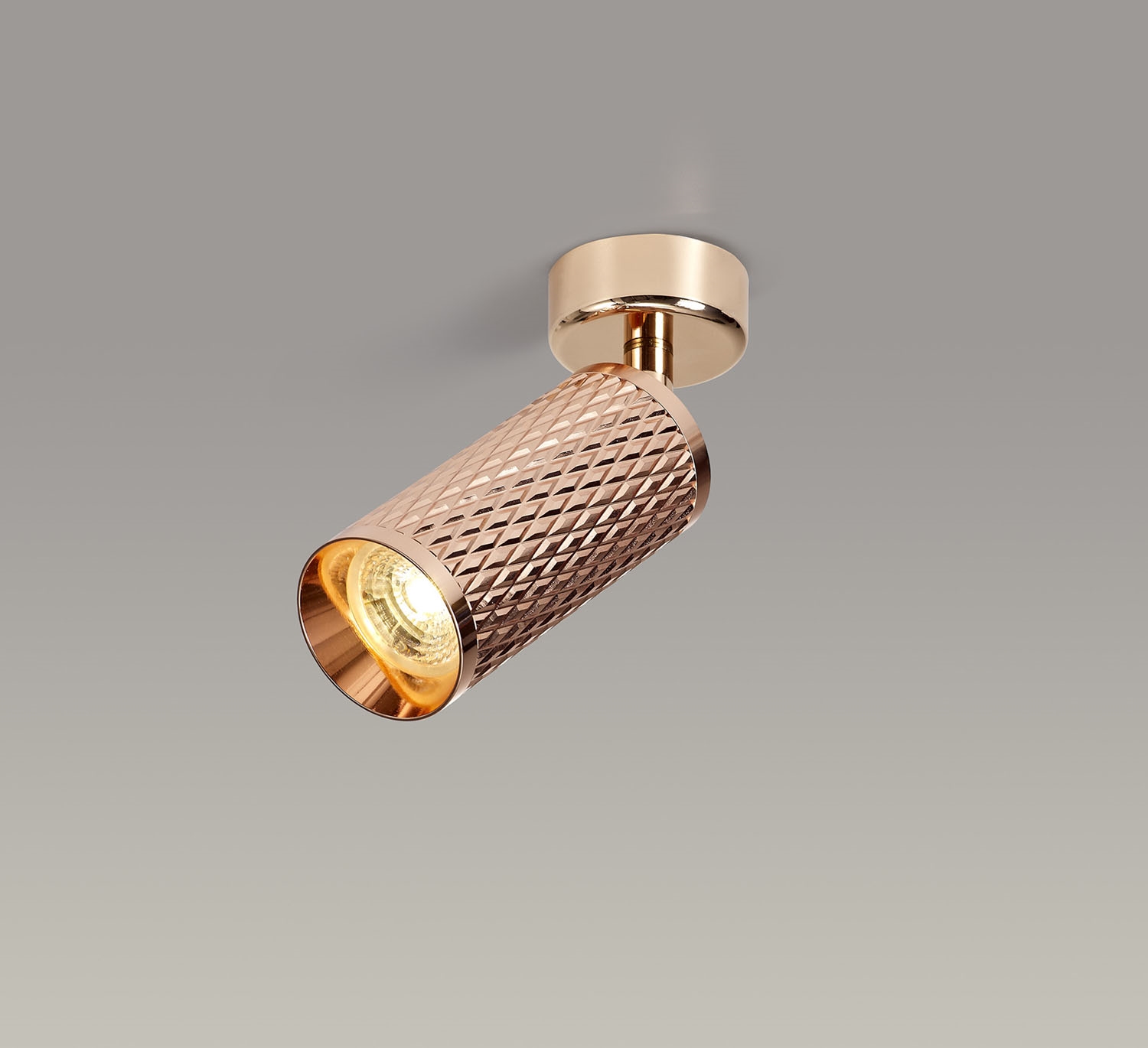 £62.00 inc VATThe cylindrical format of the Piper range is decorated with a diamond imprint producing a mesh like effect. These light fittings are available as a surface mounted ceiling fitting, wall lamps, track spotlight or surface mounted adjustable spotlight. The wide variety of colour finishes available, complementing face ring accessories and the pendant kit offers a greater number of lighting solutions for all kinds of room settings and applications.