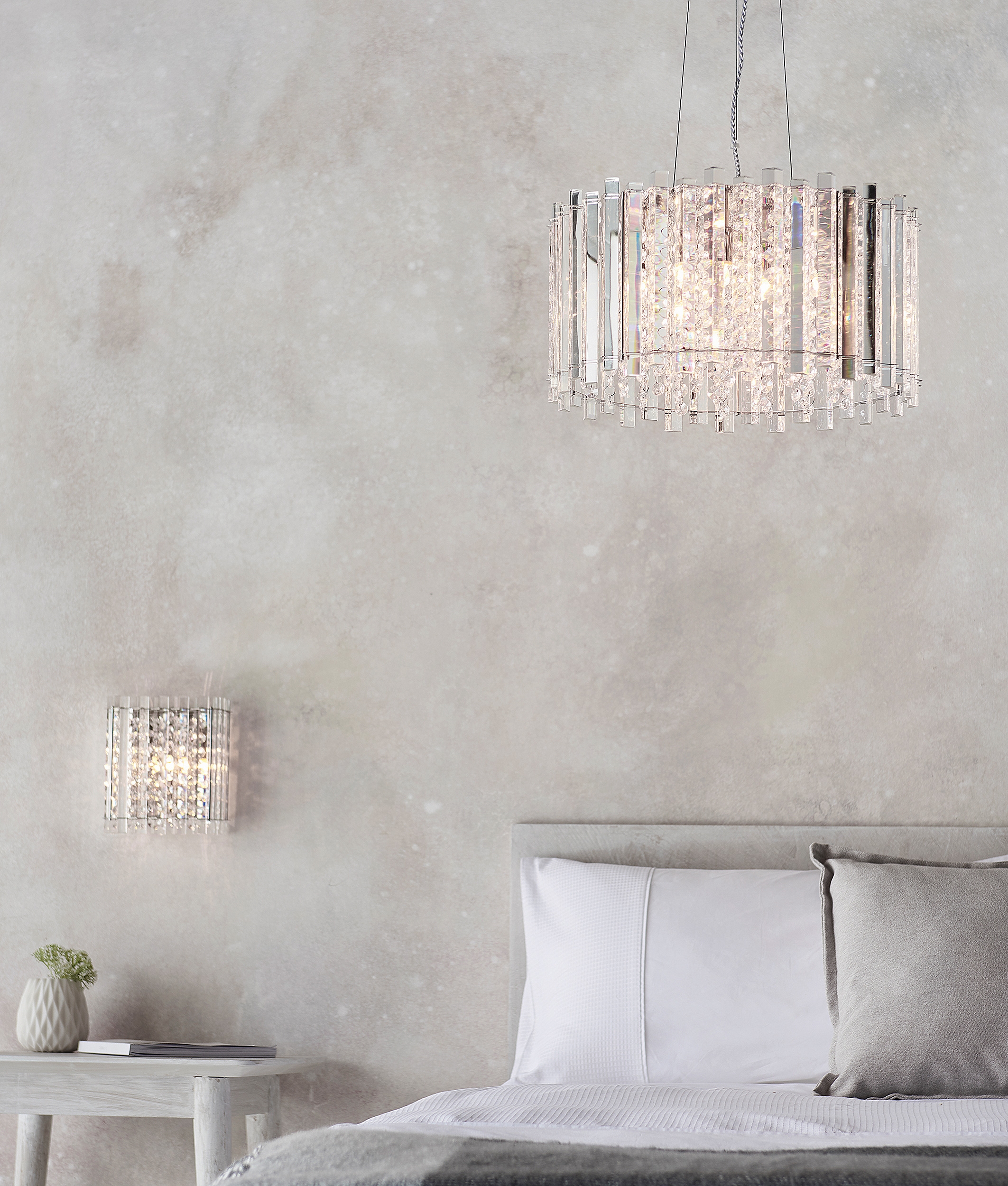 £422.60 inc VATAn exquisite, high-grade crystal ceiling pendant featuring clear, faceted glass droplets, crafted to add a touch of opulence to your favourite home interiors. Enhance your décor by pairing it with the corresponding flush mount and wall light. Whether illuminated or not, this pendant is a captivating addition to any living area.