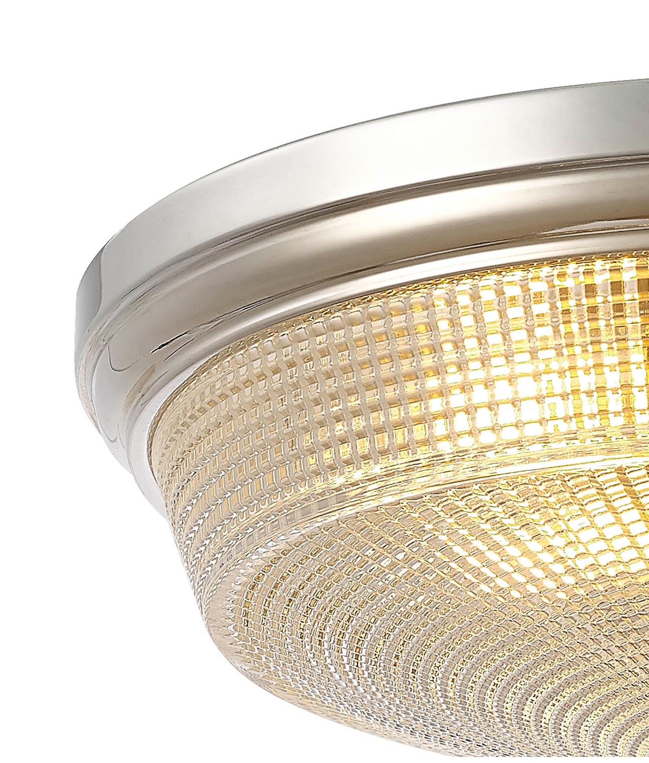 Polished Nickel Flush Mounted Prismatic Glass Ceiling Light