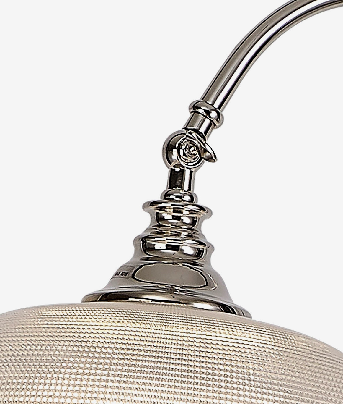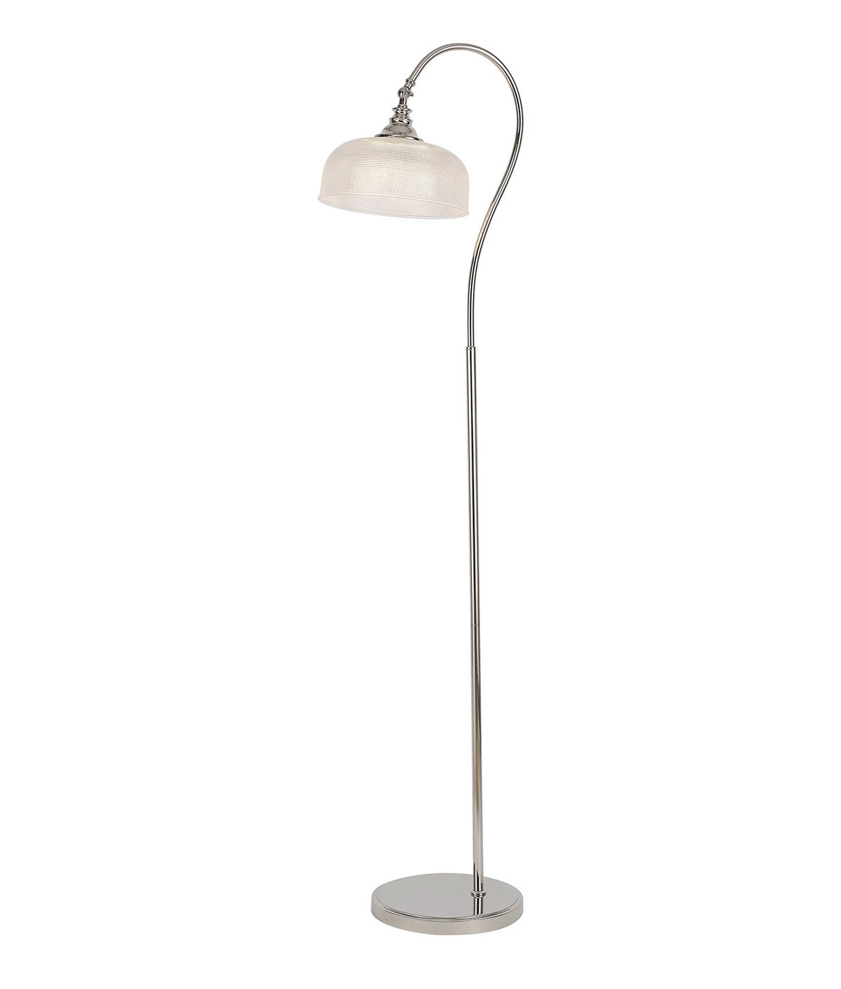 £182.00 inc VATThis polished nickel floor lamp features a textured prismatic glass shade that brings subtle interest even when not in use. The shade includes an adjustable knuckle joint, allowing you to direct the light where it is needed for reading or focused tasks.