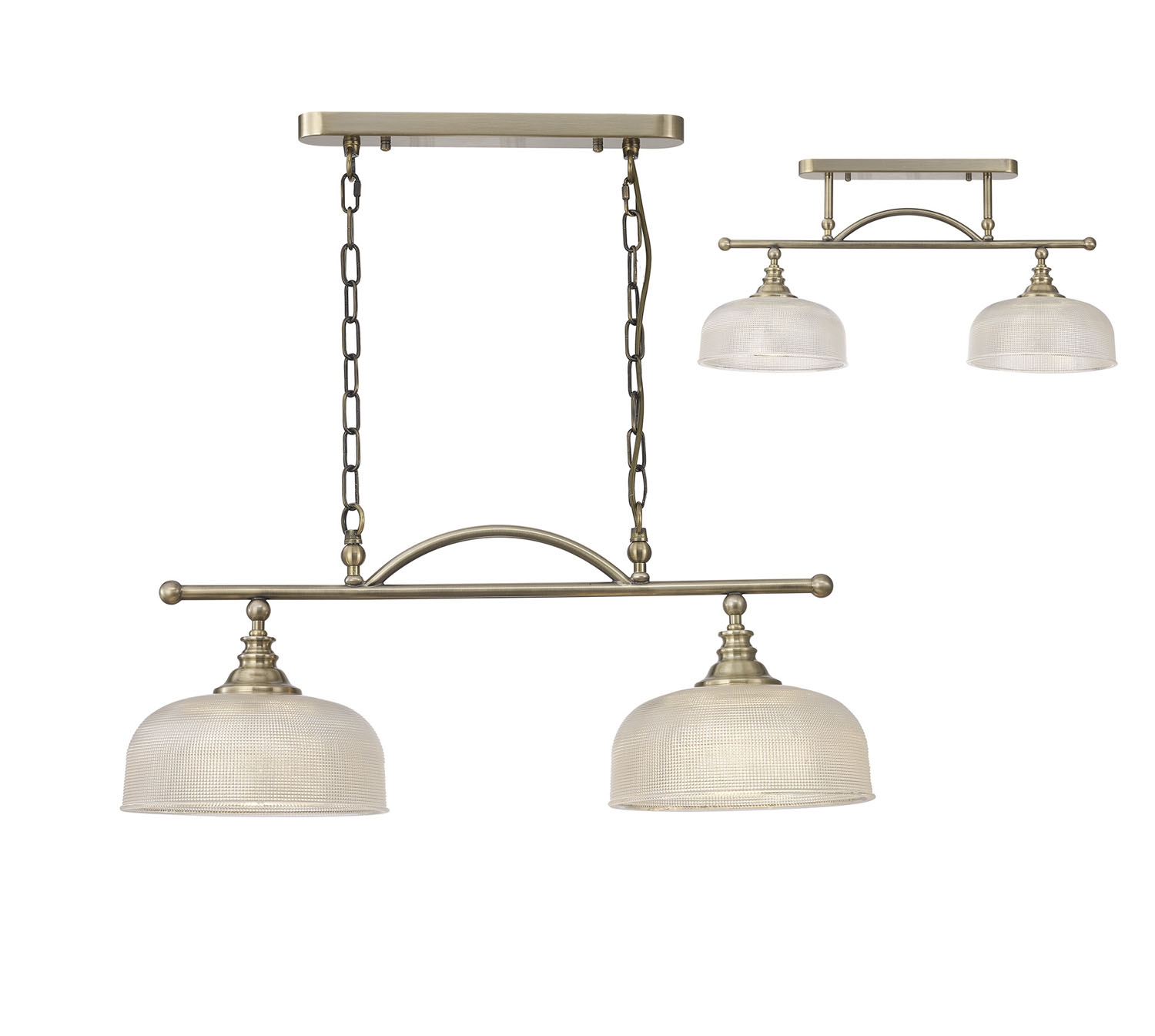 Prismo Semi Flush-Pendant Bar, 2 Light Adjustable E27, Antique Brass-Prismatic Glass