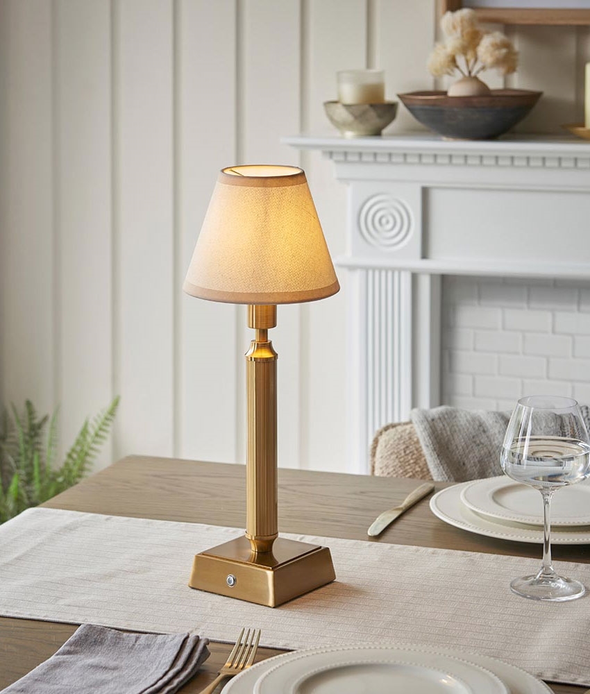 Fluted Stem Traditional Style Table Lamp In Aged Brass - Rechargeable and Portable