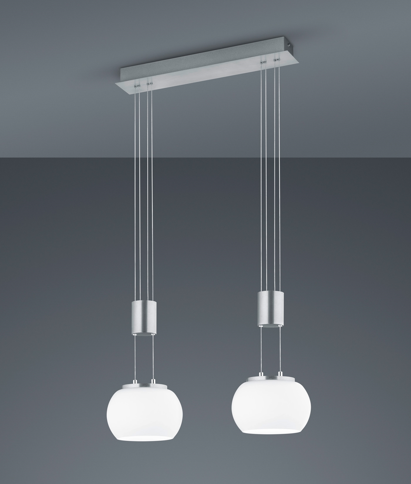 From £290.50 inc VATThis linear flush-mounted rise and fall triple glass pendant merges practical function with contemporary design. It features two individually adjustable flexes each containting a glass shade, allowing you to effortlessly customise the height to match your room layout or table arrangement.