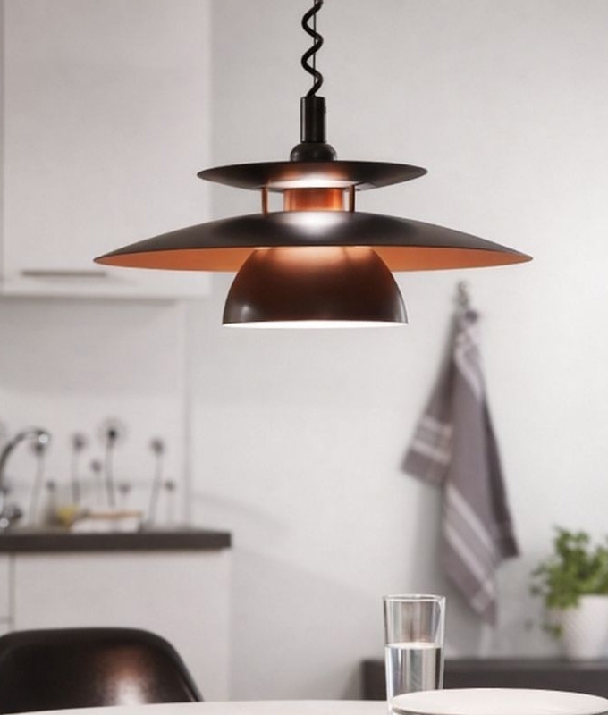 pendant has a acrylic black finish complete with steel black copper centre. This light is suspended by a springy flex making the height flexible and also features a black pull cord and black base. T - See more at: http://www.eurolight.com.au/eglo-31666-brenda-1-light-flexible-pendant-black-copper.html#sthash.3jn4emc8.dpuf