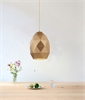 The patterned metal shade allows light to shine directly downward while casting subtle light through the open sections, offering a mix of direct and decorative illumination.