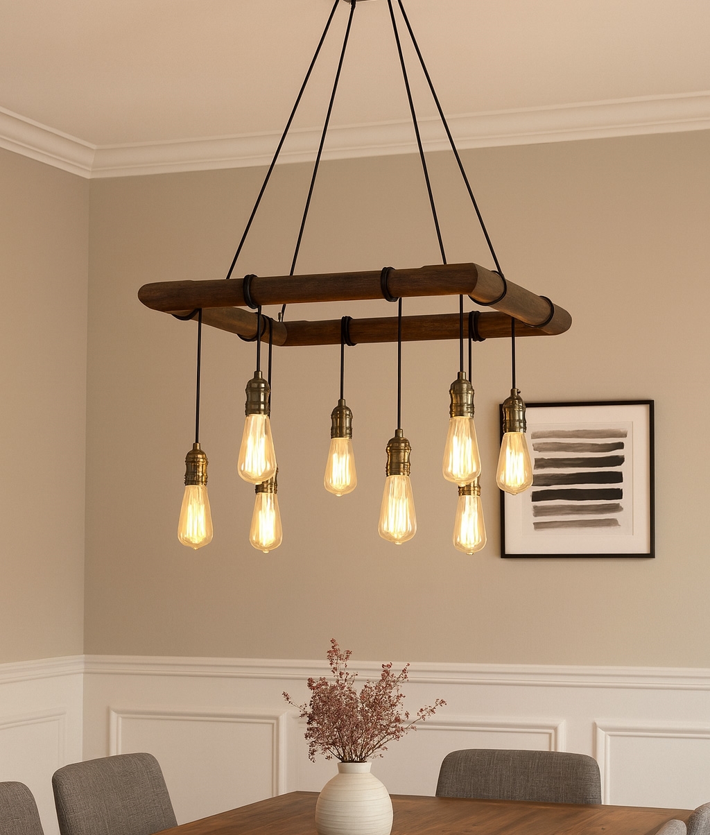 Designed for 8 x E27 base lamps up to 20 watts. Use a heritage style lamp or decorative GLS filament for interest.