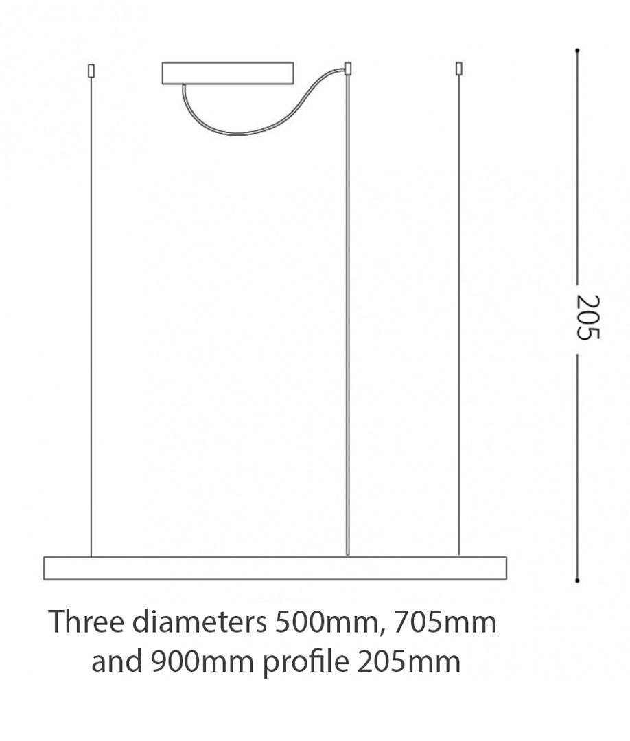 Available in three diameters — up to 900mm — these lights make an impressive statement in large rooms or open-plan settings.