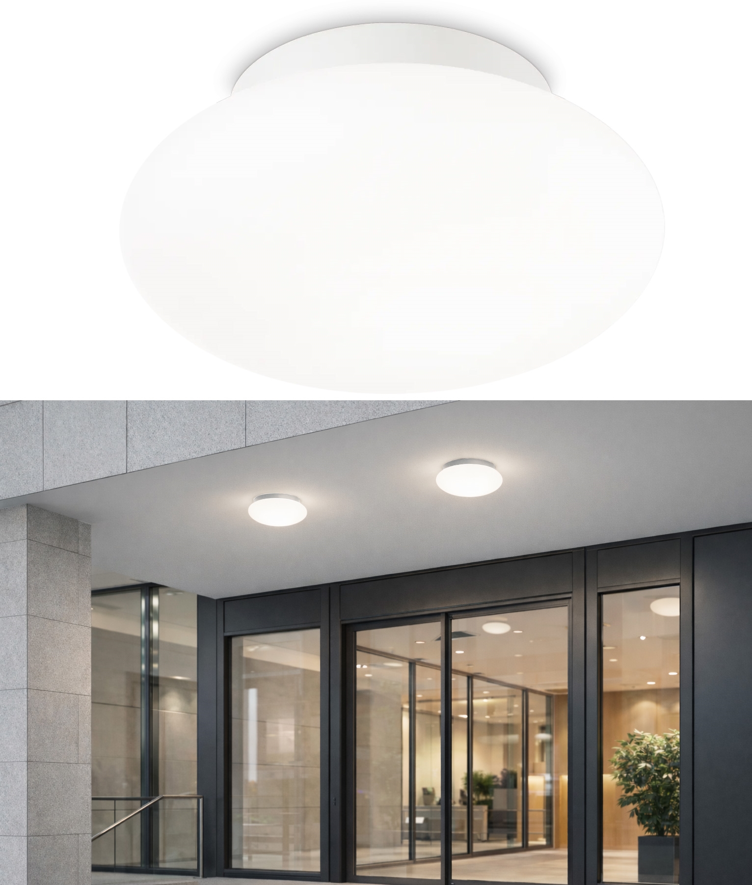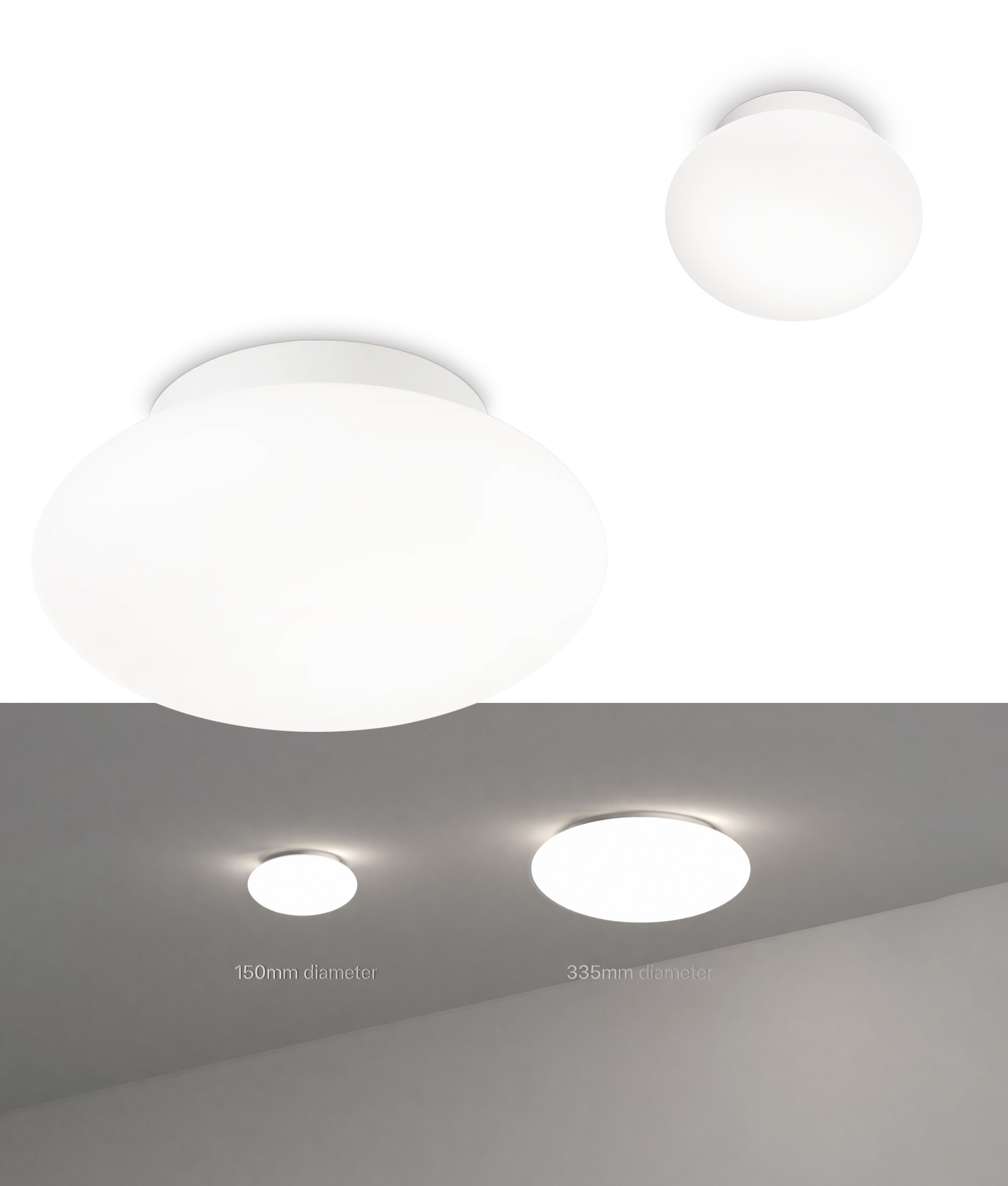 From £86.50 inc VATThese two fittings offer a clean, rounded form with a smooth white diffuser that delivers soft, even illumination. Both options provide diffused lighting, reducing harsh shadows while giving bathrooms and outdoor areas practical, comfortable visibility.