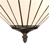 £230.00 inc VATSolana uses a traditional Tiffany shade but with a modern twist. The fanned feather shapes forming the umbrella glass is mostly cream coloured with the curved tips of each point available in either green, brown, red, blue or grey. The modern component takes the form of small clear crystal pieces fixed on alternating points of the shades rim furthering the ranges regal appeal. The range of colours gives this products such a large range of settings with the table lamps, floor lamps, pendants and semi ceiling pendants