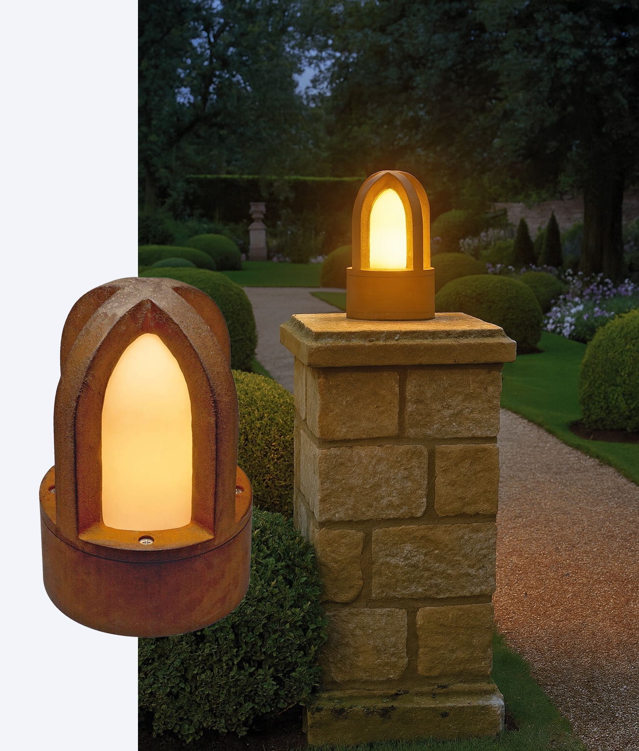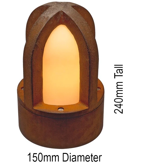 The design and finish of this ensures it quickly blends into its surroundings whilst creating a great ambient light. While it appears rusty this post light is manufactured from cast iron with a high addition of copper resulting in a controlled corrosion of the metal. It will not flake off and cause excessive staining.