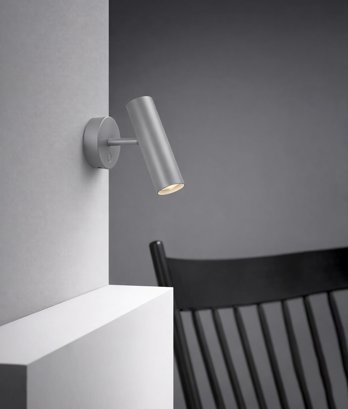Tubular Grey Wall Light For Mains GU10 Bulbs - Adjustable, switched, hardwire or plug-in