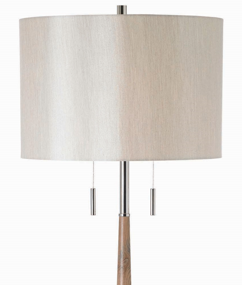Twin Polished Nickel Floor Lamp With Natural Wood Stem