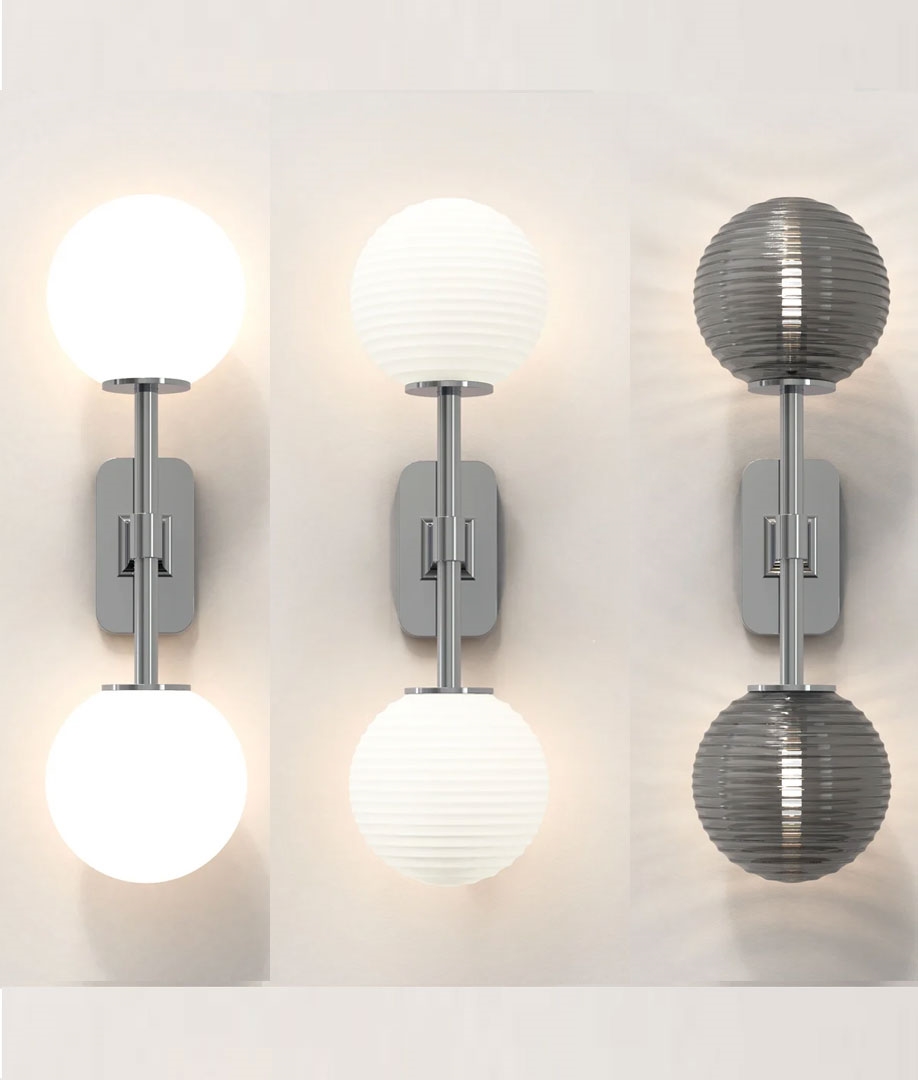 From £145.00 inc VATThis twin lamp, Art Deco inspired, bathroom wall light has a chunky, metal bracket finished in either antique brass, matt black or polished chrome and a choice of four hand-blown, spherical, glass shades. Choose from a smooth white opal or ribbed clear, white opal or smoked glass shade. The wall bracket and shade are purchased separately so this fitting can be customised to suit your own space and preferences.