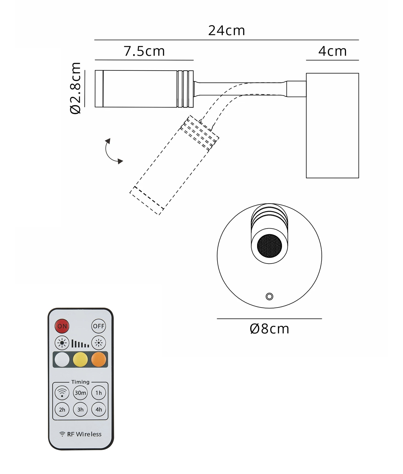 USB Rechargeable LED Wall Light with Remote - White or Black