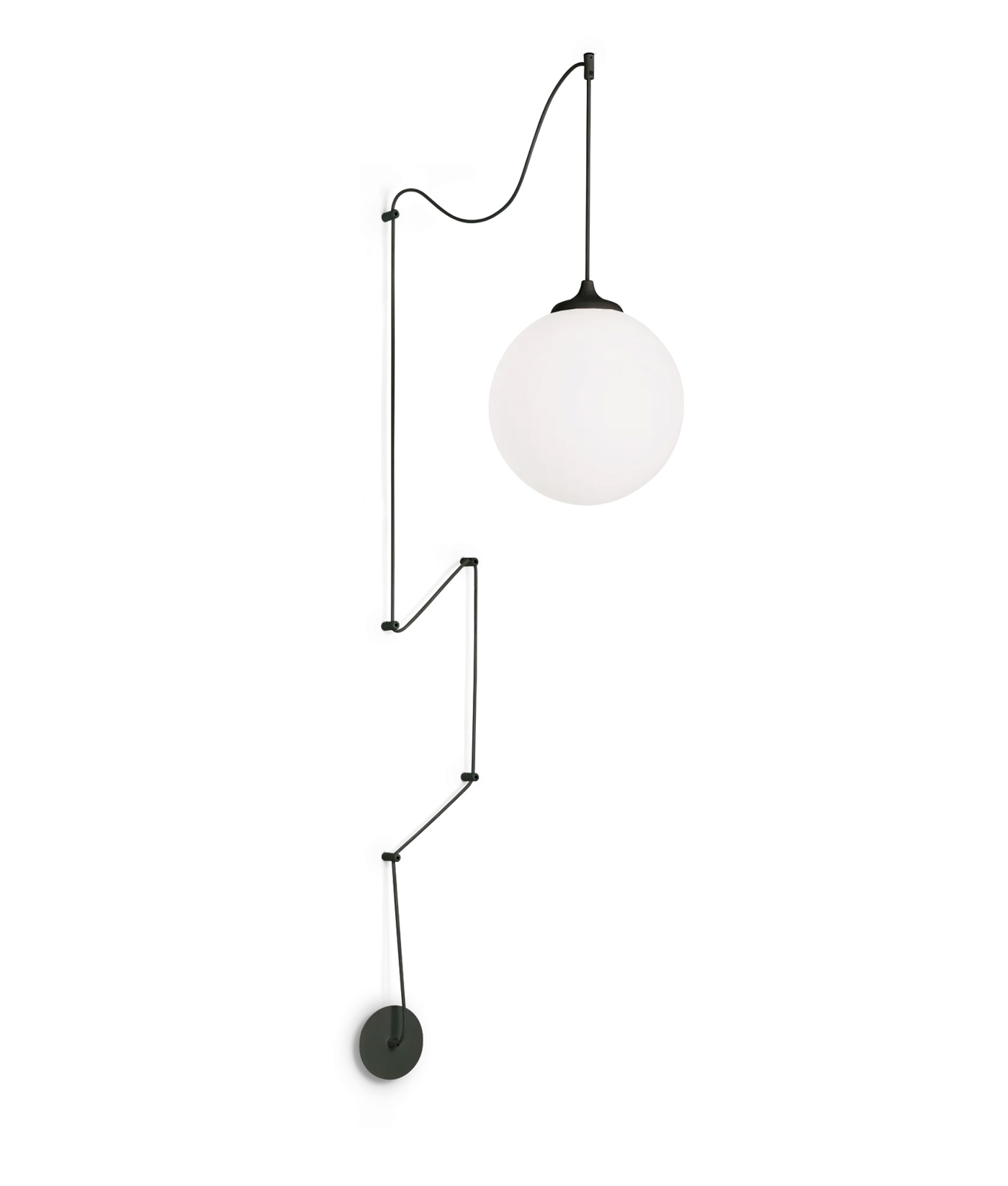 The rose for the wall is metal and this, and the flex, is available in white or or black. The acid-etched white globe measures 300mm.