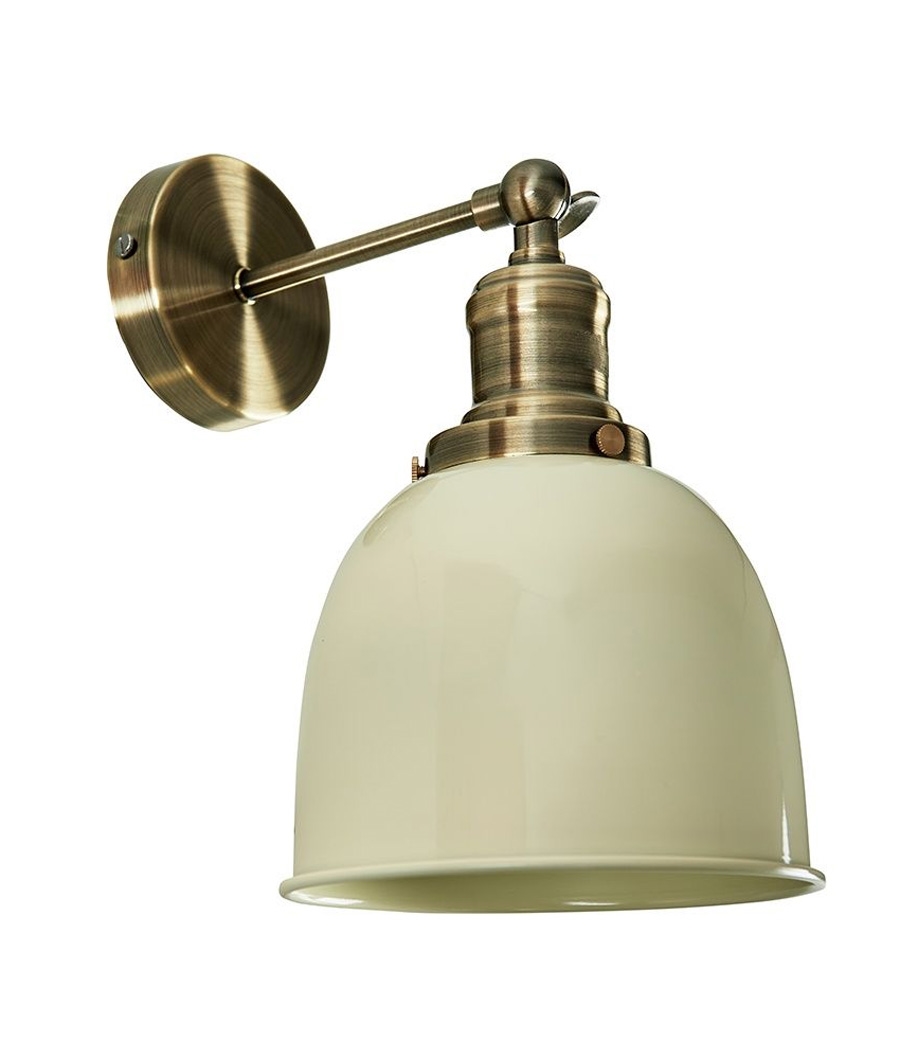 Available in two versatile finishes—classic cream or bold black—each comes paired with an antique brass wall bracket to seamlessly complement your décor. The shade’s white interior enhances light reflection, producing a warm and inviting pool of light.