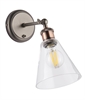 £80.00 inc VATA stylish, industrial inspired wall light finished in aged pewter with aged copper detailing. This light is bang up to date with on-trend 'retro' styling. Switched, with a clear glass, cone-shaped shade, featuring adjustable knuckles and knurled lamp holders which complete the authentic look.