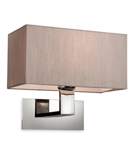 Elegant wall light with three finish options and fabric shade choices.